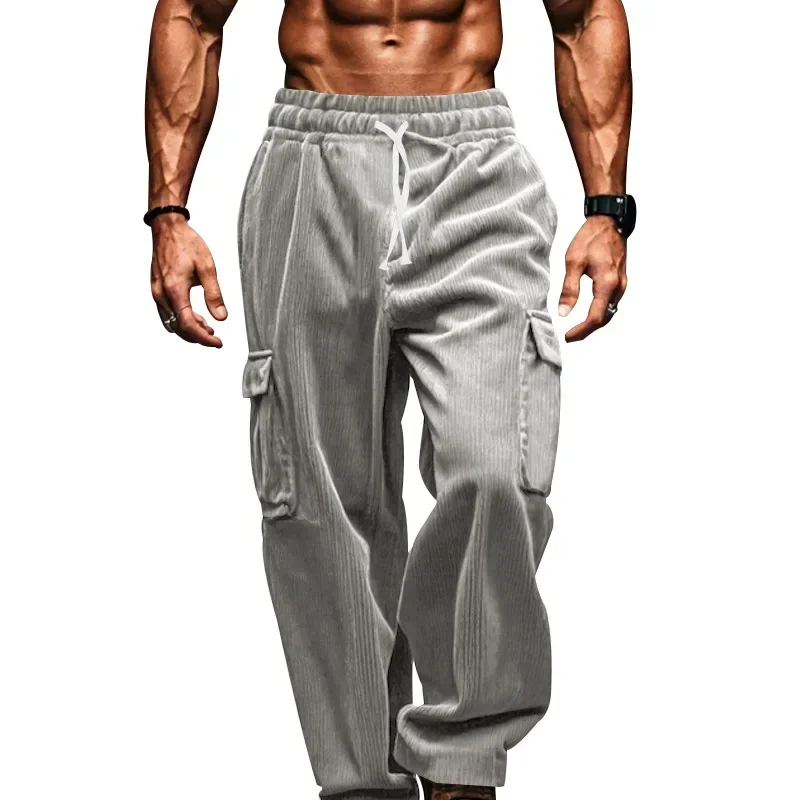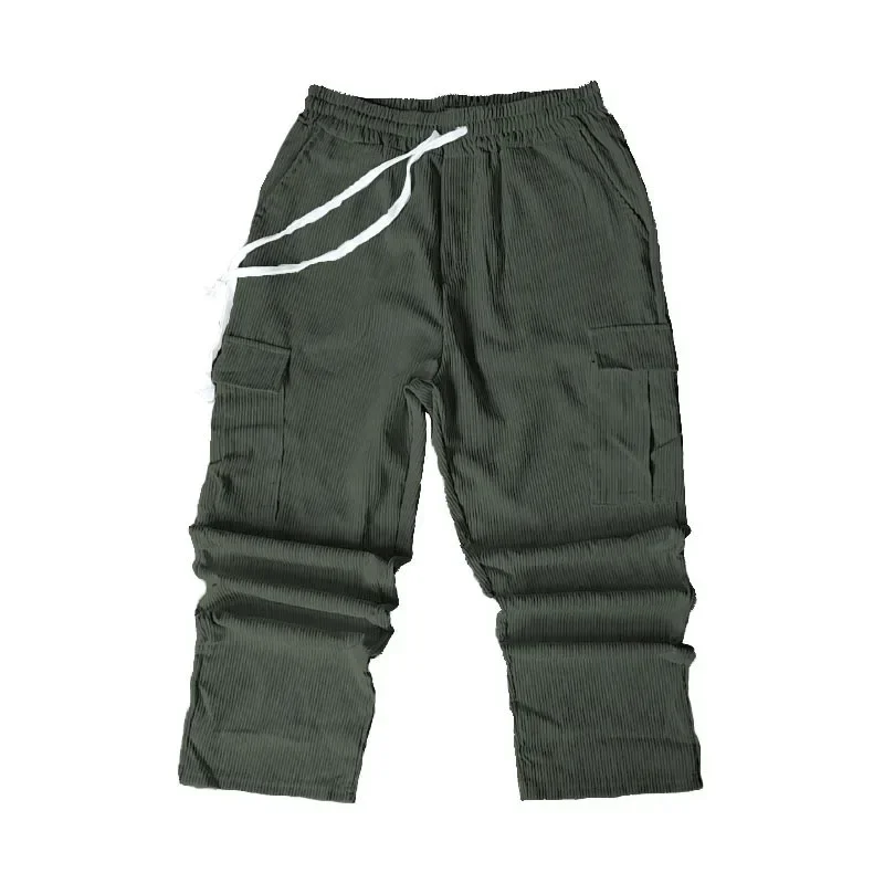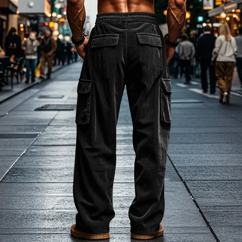 Men's Retro American Corduroy Casual Trousers 2025 Loose Fit Multi-Pocket Straight Leg for Comfortable Wear